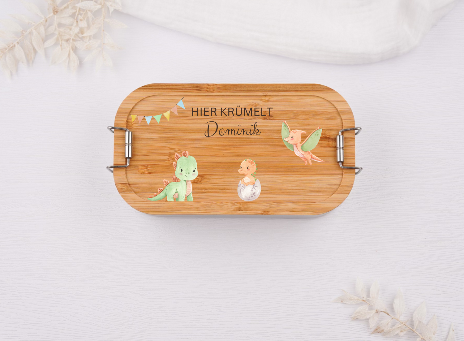 Die Brotdose wird mit eurem Lieblingsmotiv und dem Namen für euch personalisiert und gefertigt.