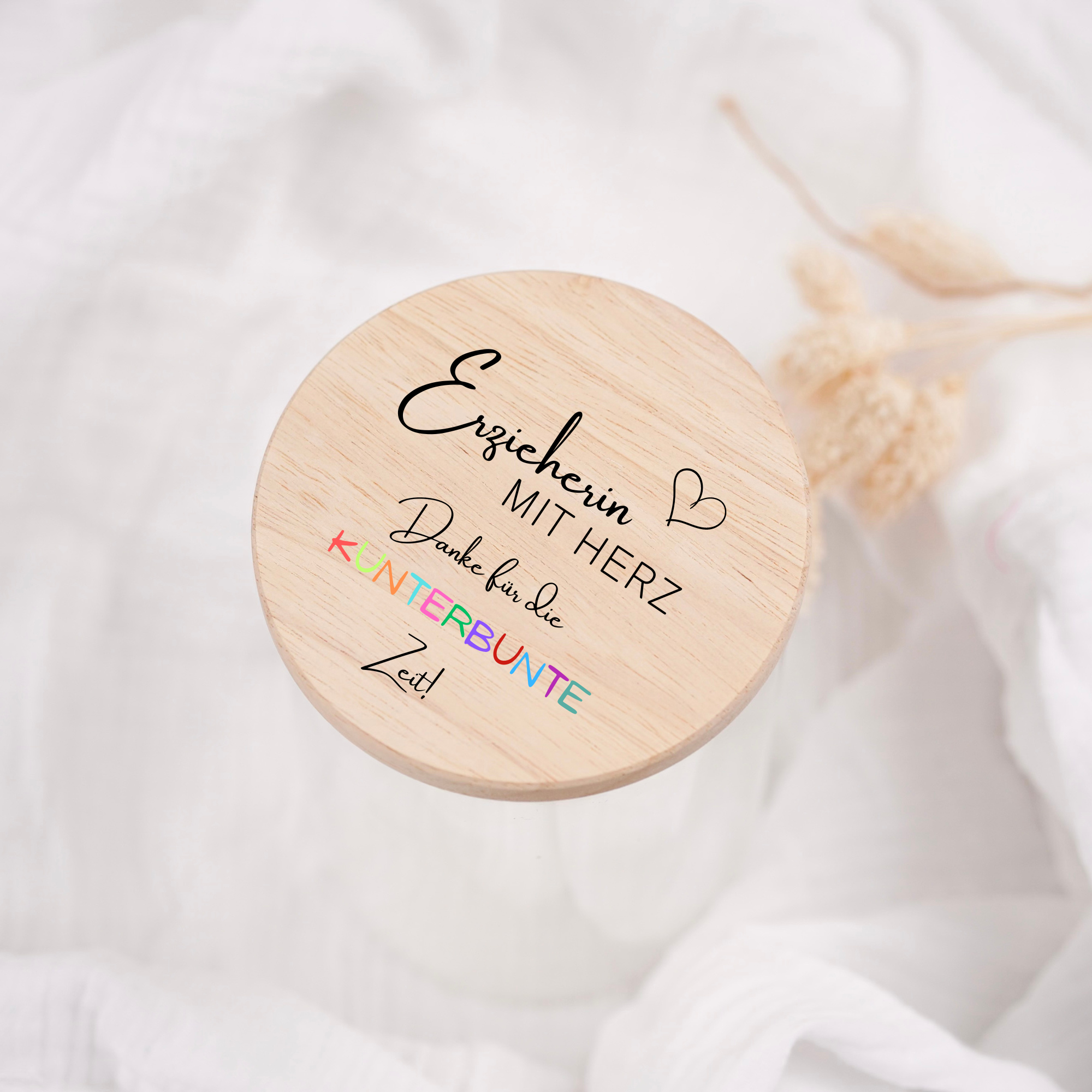 Das Vorratsglas ist ein tolles Geschenk für Verabschiedungen von Kindern im Kindergarten oder Schule.