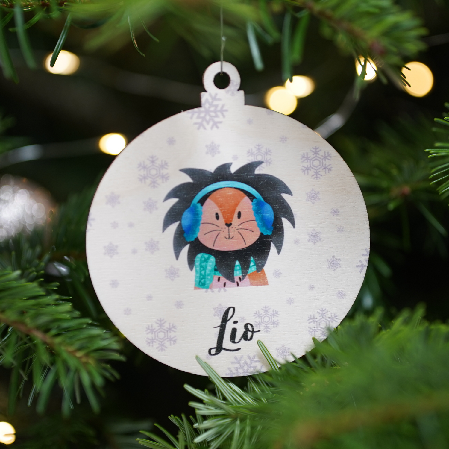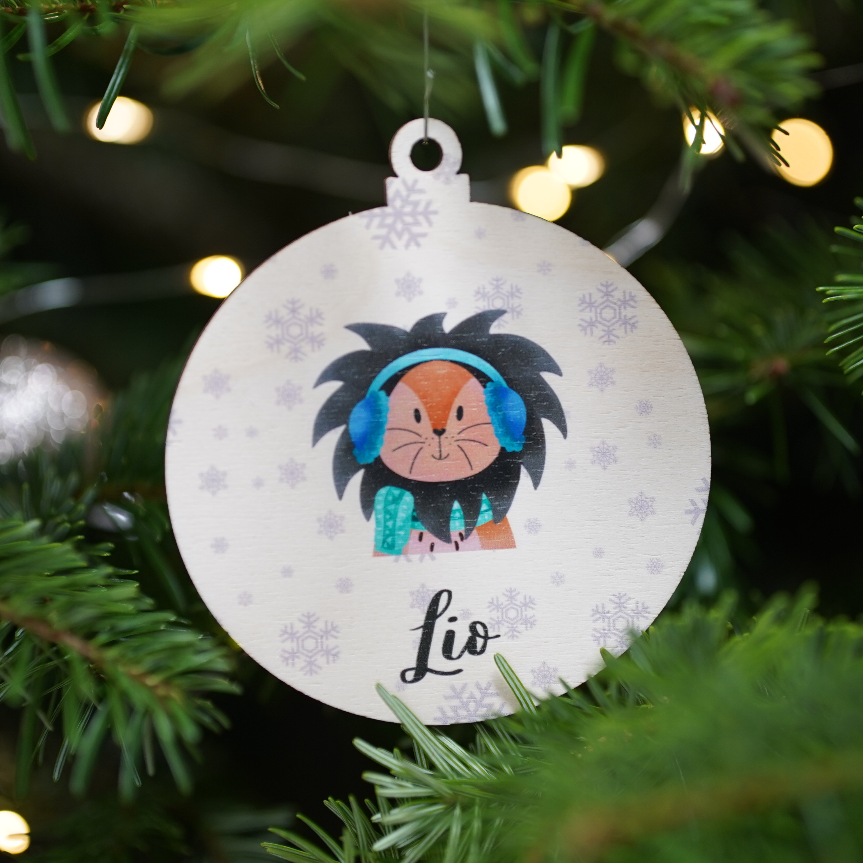 Christbaumkugel mit Personalisierung und Löwe