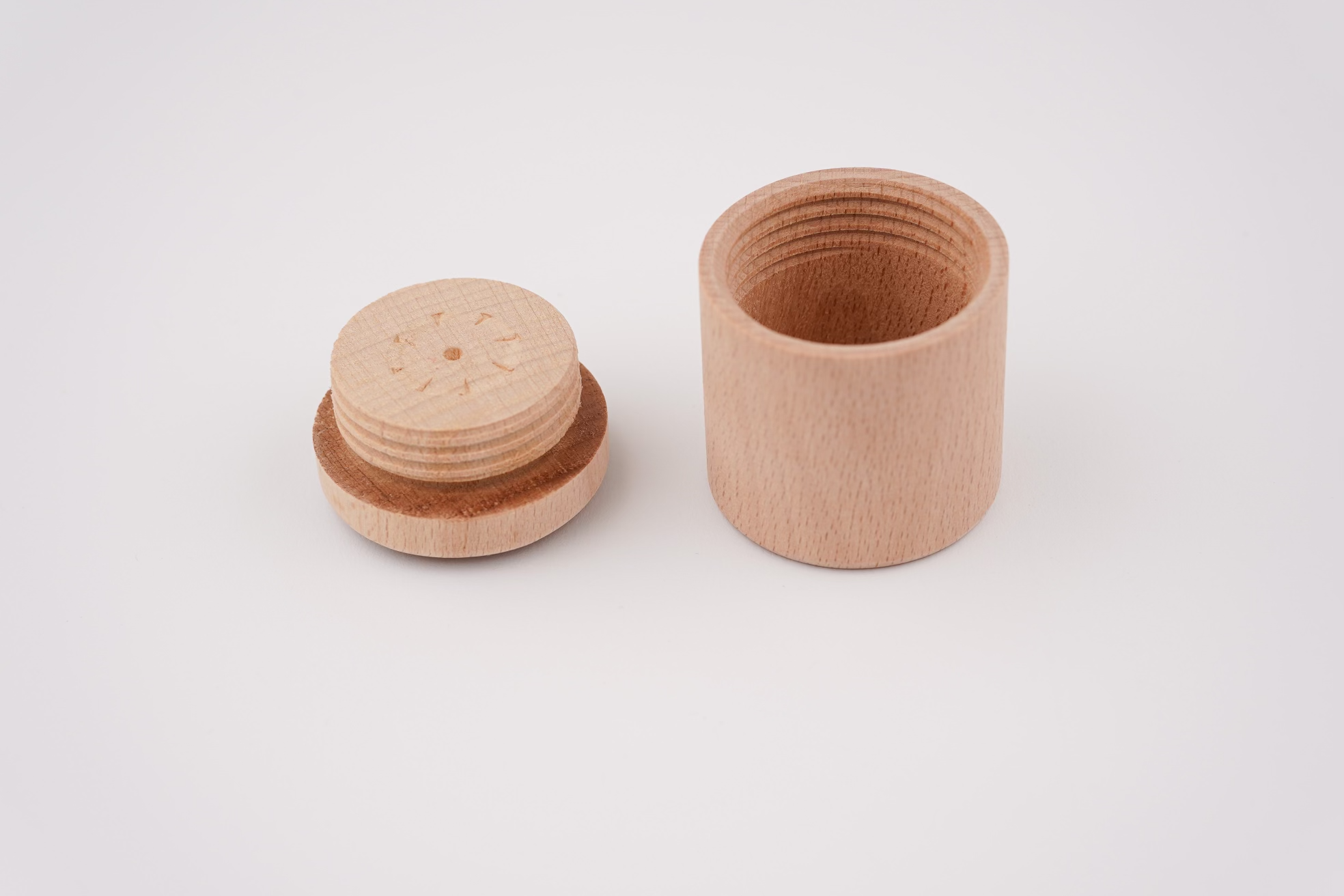 Der Deckel der Zahndose hat ein Holzgewinde.
